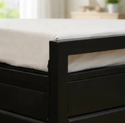 The highlight of this bed is the gas-lift hydraulic mechanism, which allows you to lift the mattress platform with minimal effort. Underneath, you’ll find a spacious box storage area designed to keep your extra bedding, luggage, and seasonal items organized and dust-free. The entire frame is coated with a premium black powder finish that not only looks sophisticated but also protects the metal from rust, corrosion, and scratches.