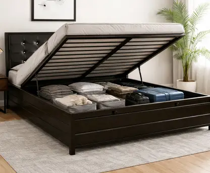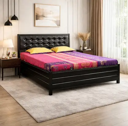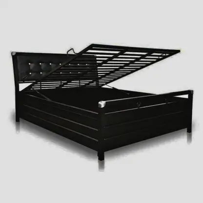 The Ahad Enterprises King Size Metal Bed is a perfect blend of modern aesthetics and heavy-duty performance. Finished in an elegant black, this 6x6 ft bed features a robust hydraulic lift system and massive under-bed storage, making it an ideal choice for those who value both style and space efficiency